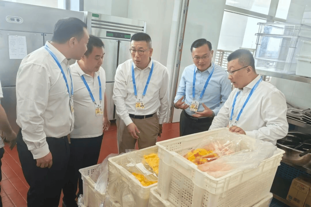 近期,全聚德集团领导赴天津梅江会展中心,调研上海合作组织峰会新闻中心餐饮服务保障工作,并慰问全聚德服务保障团队。全聚德集团董事、总经理周延龙,工会领导刘永龙,以及总经理助理马加一行深入媒体餐厅、茶歇区、中餐厨房、员工餐厅及备餐区,详细了解全聚德在峰会期间的供餐情况、员工就餐安排及媒体评价情况。全聚德领导对团队辛勤付出表示高度肯定。
