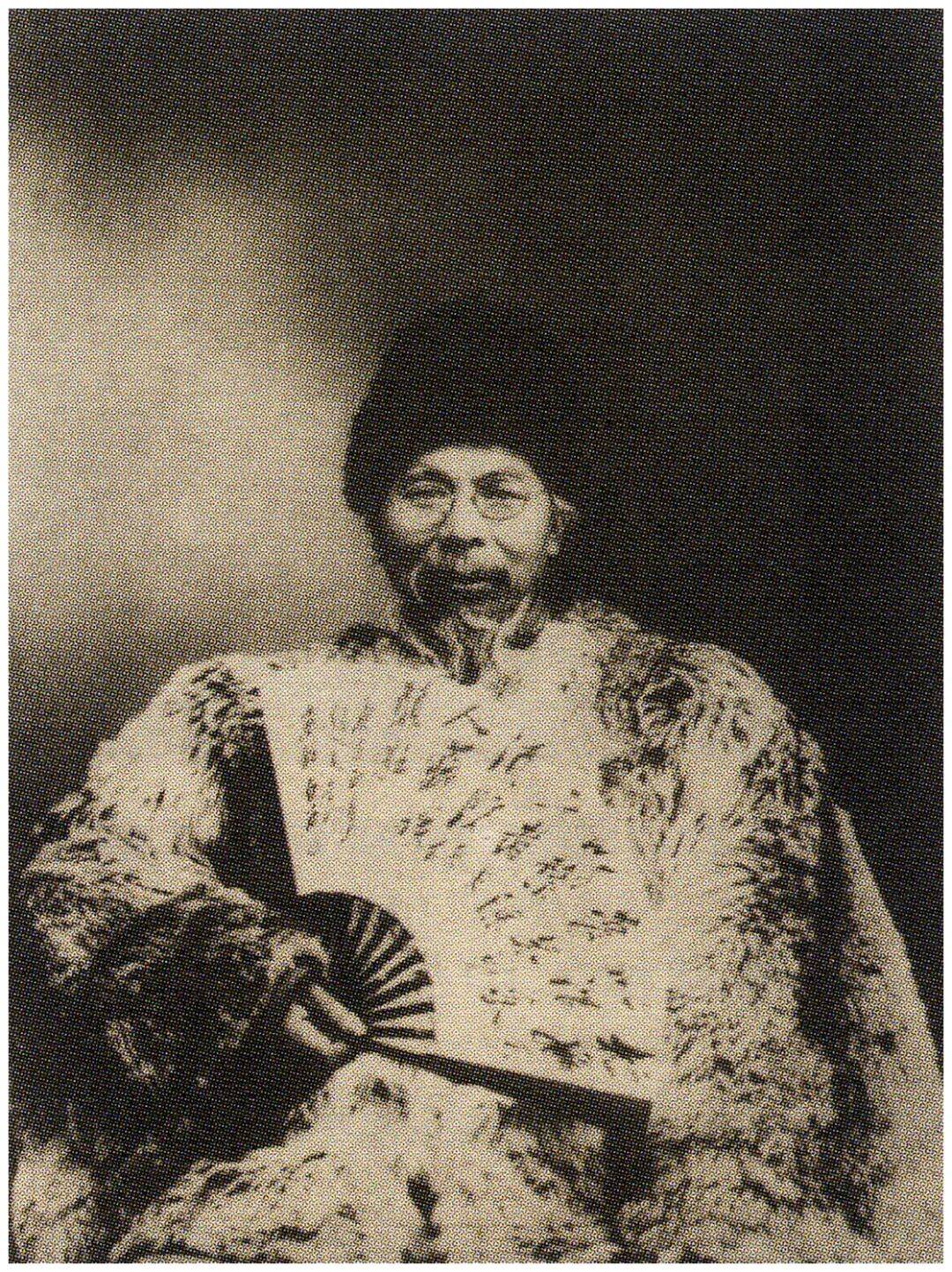齐白石的很多照片与其学术是分不开的。约在1930年岁末,铸新照相馆为他拍摄了一张“裘扇照”——头戴毡帽,身穿裘衣,手拿折扇,堪称齐氏一生最拉风的照片: