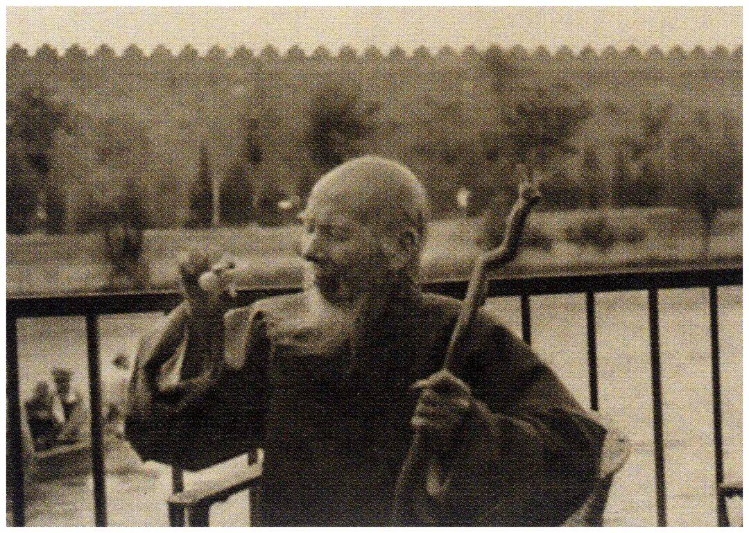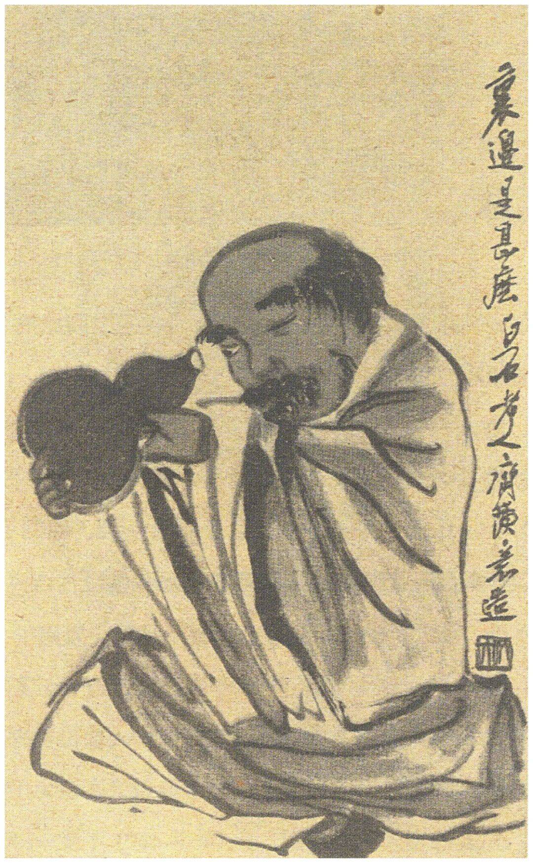 1946年,年轻貌美的女学生王令闻为齐老师拍照时,老师却说要准备一下,然后从衣襟里拿出了一个小玉葫芦,之后眯起眼睛往里看,并说道:“我要看看这葫芦里有多大乾坤!”这不就是他常画的《铁拐李》嘛!