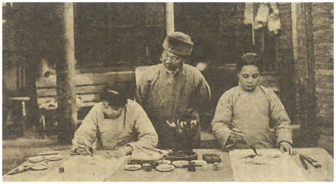 三、暗藏天机。1935年,《天津商报画刊》之《白石山翁诗书画印专号》上刊登了一张课徒照——齐白石居中,左、右分别是副室胡宝珠、外甥媳邓柏云,同时刊登了“二徒”当日所作之画。