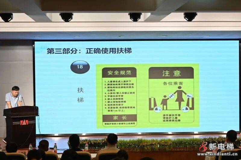 活动现场,沈阳远大智能交付中心技术部长杨升远率先通过视频短片,直观讲解电梯与扶梯的基本原理——既播放了市场监管局制作的“正确乘坐电扶梯”指导视频,也展示了沈阳地铁拍摄的“安全乘坐公共交通扶梯”案例,让师生们快速理解乘梯核心常识。随后,杨升远部长围绕公众关心的电梯安全问题展开讲解,重点科普常见误区并互动问答。