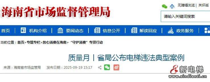 2025年9月,海南省市场监管局结合“质量月”活动,公布5起电梯安全违法案例,涉及超期未检、未履行主体责任等行为,旨在强化行业警示作用。